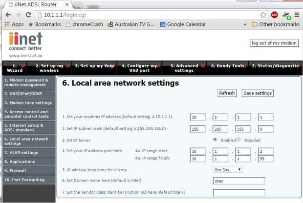 Al elegir IP estática desde 100 evitará tener dos dispositivos con la misma dirección. También puede cambiar la configuración de DHCP en tu router para limitar el rango de direcciones IP que se asignarán automáticamente. Aquí es lo que parecen en mi router. Ver punto 4. en la pantalla. He puesto la IP de DHCP acabado a 10.1.1.99 para que el DHCP no asignará ningún mayor que IPs.