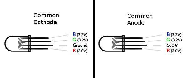 Este tutorial será escrito para un LED RGB usando un ánodo común. Señalaré los bloques de código que tendrá que ser diferente cuando se utiliza un cátodo común. Leer sobre el LED antes de proceder.