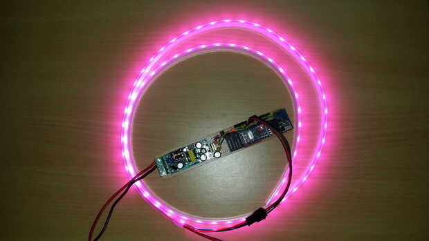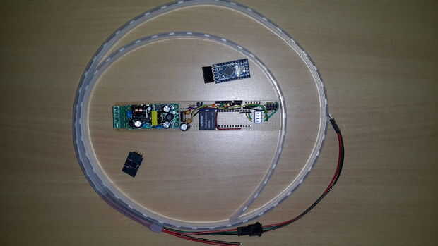 Este es un pequeño proyecto que surgió con una 5 M 3528 RGB LED tira luz que gané en una subasta en eBay. La luz de tira vino con una llave 24 IR teledirigido y un controlador LED. Tuve que agregar un adaptador de 12V y algunos otros bits y piezas, p
