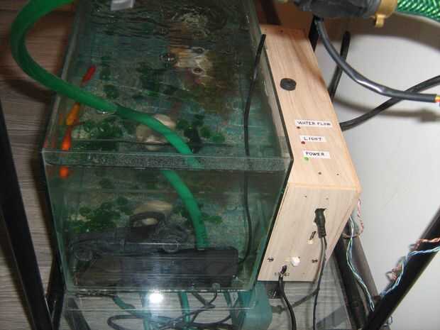 Usé un acuario de 20 litros como un tanque con tuberías de pvc de pescado a 10 contenedores de pequeña planta de la casa. Su una pequeña configuración experimental pero el controlador puede utilizarse en un sistema mucho más grande. Incluso se podría ejecutar un invernadero pequeño aquaponic o si ya tienes un sistema NFT aquaponic puede simplemente conectarlo en eso.