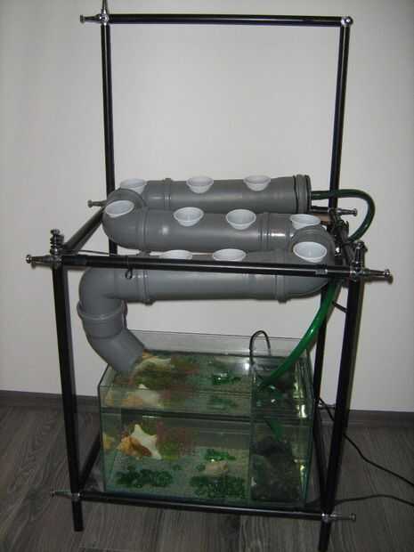 Marco de la Utiliza para el sistema era una vieja estantería hecha de barras de aluminio y conectores. Es bastante fuerte para sostener el acuario y tubos con plantas y parecía buena así que decidí reutilizar. Si no encuentras nada similar usted siempre puede hacer su propio marco. Las dimensiones son: altura 50cm, ancho 50cm y profundidad 40cm.