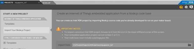 - Iniciar un nuevo proyecto, seleccione "Importación su Node.js proyecto" navegador de la carpeta donde usted descomprimido el zip, continuar e introduzca un nombre de trabajo del proyecto.