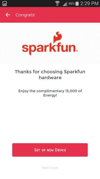 Después de explorar el teléfono sobre el código QR en su tarjeta de Blynk Junta. Blynk debe aparecer una nueva pantalla, Felicidades, ya tienes algo nuevo Blynk de energía para jugar con!