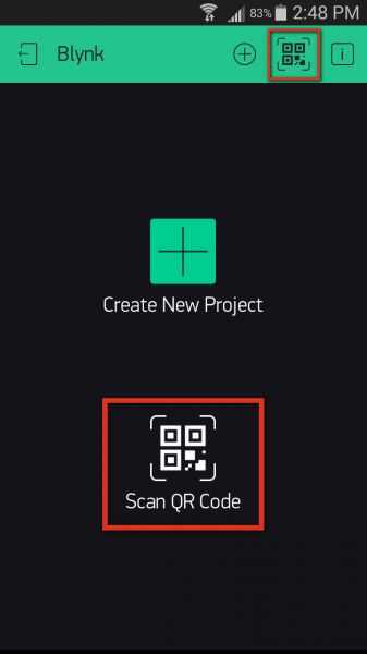 Paso 1: Escanear el Blynk Junta QR código, haga clic en el icono de QR-code en la esquina superior derecha de la aplicación de Blynk (o el icono más grande en la pantalla principal).