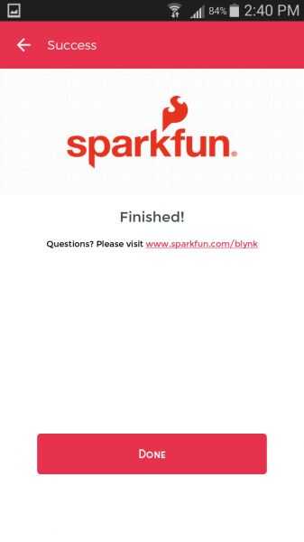 Después de una exitosa conexión de nube de Blynk, debería ver la página "Acabado!". Y el RGB debe ser suavemente descoloramiento entrada y salida.