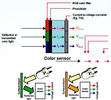 El sensor de luz funciona alumbrando con una luz blanca en un objeto y luego