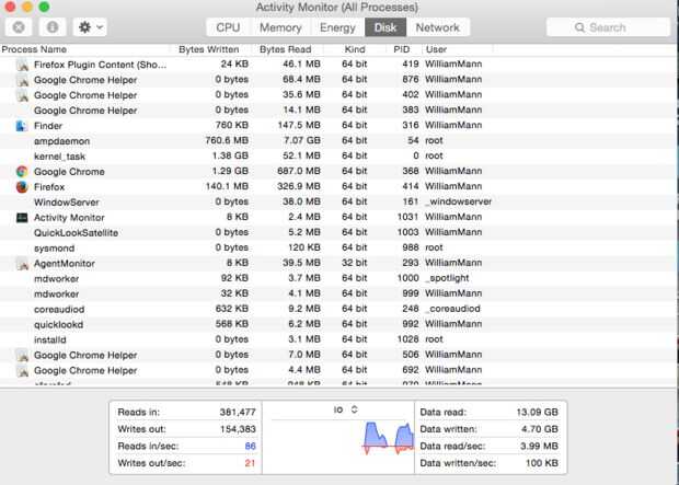 En la ficha de disco, los datos se escriben o en un disco es monitoreados aquí. Esto significa que si usted save algo o una copia de seguridad se está ejecutando, demuestra para arriba aquí. Puede escribir de las cosas son, pero no limitado a: copia de seguridad de directorios de la computadora, memorias, discos, servidores web.