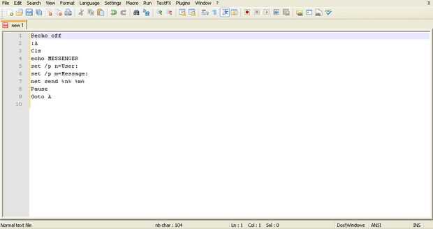 Enviar un mensaje que tendrá que abrir el Bloc de notas y escriba: