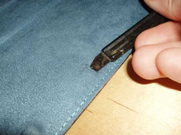 4) usa el cuchillo para limpiar un bolsillo para un solo imán.