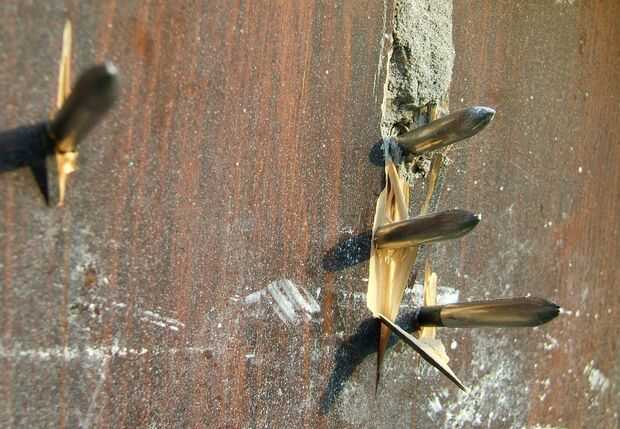 Después de la segunda catástrofe tiro está pegada. La Armada arma cayó al suelo y con la enorme fuerza de la cadena de la culata se rompió en su punto más débil: el área afectada por escarabajos de madera (ojaranzo es bueno, pero que es también la opinión de esos parásitos) y exactamente el punto donde el grano de madera fue recto en el punto más pequeño de la población.