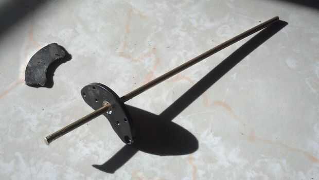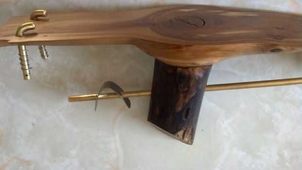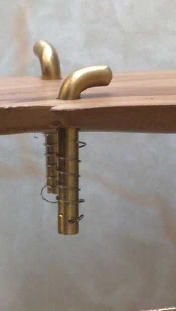 Varilla de latón doblado en ganchos y usado para sostener el ipad a la cara del soporte con resortes conectados en el parte de atrás, la primavera viene de plumas viejas que no funcionan tuvo que ampliarse a un diámetro más grande para barra de cobre amarillo libremente forma, para garantizar los resortes en lugar de agujeros se perforan y extremos de resortes son alimentados a través de.