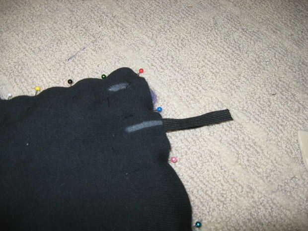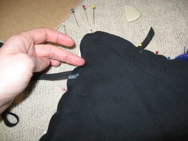 Quieren duplicar, con el corte termina haciendo coincidir con el borde del lado opuesto que pones elástico en la esquina catty. Que, también, necesitan para ser intercalado entre la diversión piel y el tejido elástico y se cubrió. Pongo en una pulgada y media a dos pulgadas. Sólo hacen incluso.