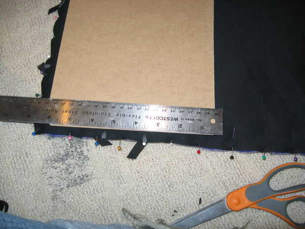 Habrá dos elásticos de esquina más catty que deben colocarse, pero sólo puede coser por un lado ahora mismo. Simplemente colocarlos como los otros. Te ayuda a mirar las fotos. Utiliza la Junta para ayudar a colocarlos 3,5 pulgadas desde el lado y les pegó en un ángulo de 45 grados como si hubiera otro lado pegar hacia fuera de.