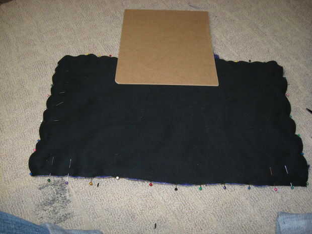Iniciado por un lado y coser alrededor dejando un agujero de tamaño de tablero en el lado largo.
