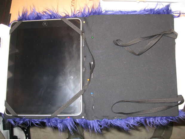 También cosen el agujero cerrado a mano y había cosido el elástico flotante flojo abajo para que el iPad tendría elástico en las cuatro esquinas de su.