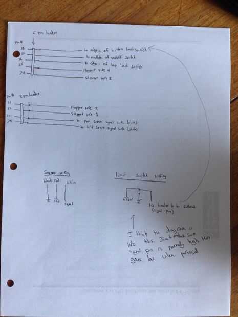 Un diagrama de pines para las conexiones externas se aprecia en el cuadro proporcionado. Más en profundidad las instrucciones también están disponibles en el instructivo para la configuración del montaje. (Conexiones eléctricas en el 3D impresión soporte de IPad por Kaitlyn Franz)