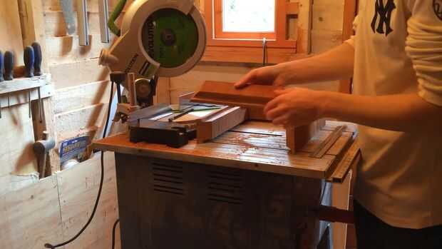 Luego usé mi sierra de inglete para cortar ingletes de 45 grados en los extremos de las 4 piezas. Esto es lo mismo como haría un marco de imagen. Así que cuando se juntan las 4 piezas que cuadrados y no podrá ver ninguna veta.