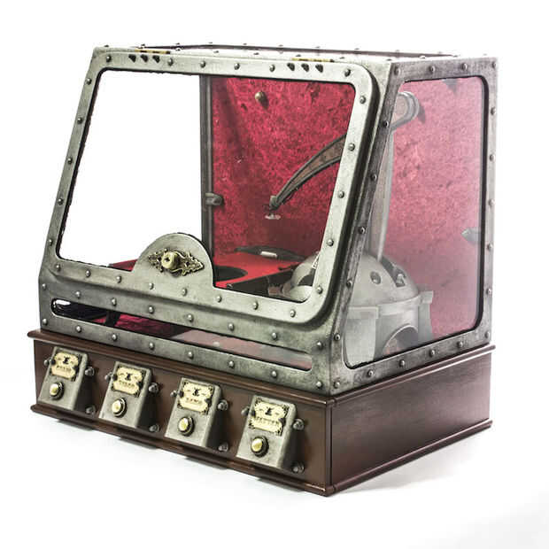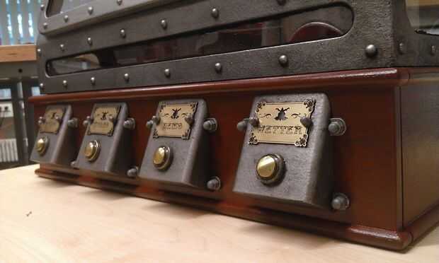 Ya que este – escribir mensajes cortos en un teclado – es un método bastante conocido de la comunicación, se decidió darle el robot un aspecto antiguo.