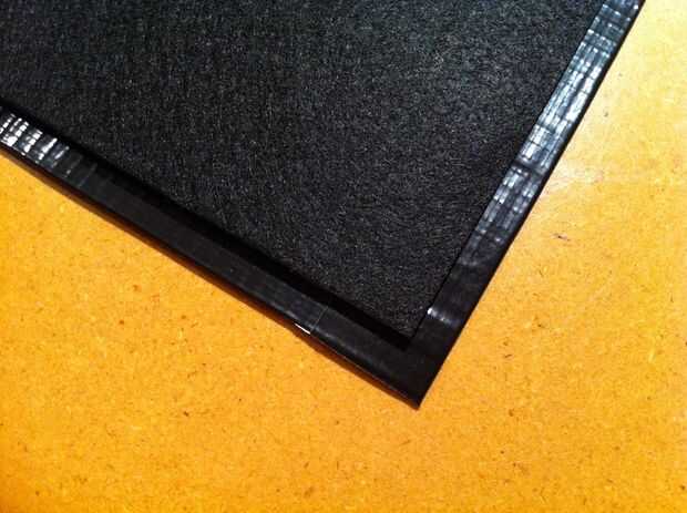 Verificación ajuste de fieltro dentro del folio. Ajuste apropiado tendrá 1/4" expuestos los bordes del folio todo alrededor. Una vez que en lugar utilizar las líneas de doblez en los bordes expuestos fuera del folio como guía al pliegue y doblar el fieltro en la espina dorsal.