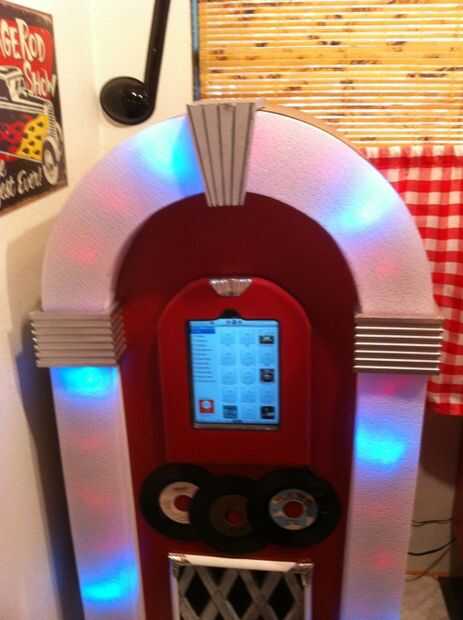 Mi plan es construir una caja de juke más grande y mejor en un futuro lejano. Las mejoras incluyen un mejor sistema de sonido - amplificadores posiblemente, y cubiertas de plástico moldeado para la luz. Yo se también no Paloma agujero yo en IPAD sólo - voy a hacer que cualquier iphone, droid o blackberry (algo que puede aceptar un conector RCA) puede ser utilizado.