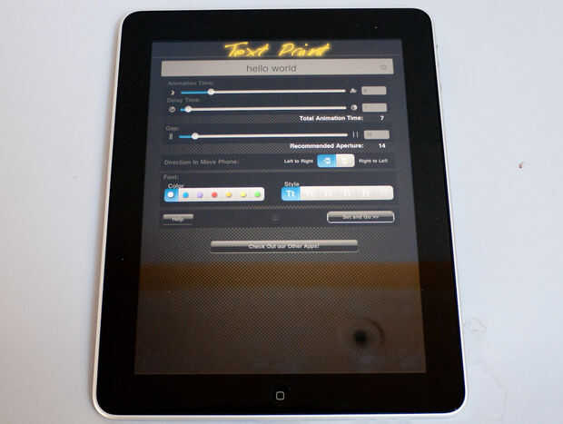 Texto Paint Pro es una fantástica aplicación que te permite escribir mensajes de 2D. De hecho, para texto 2D luz-pintura, esto es todo lo que necesitas. Detenerse por completo. Escriba en su mensaje, elija un color y una fuente, tal vez ajustar un par de los ajustes y la usted son buenos ir.