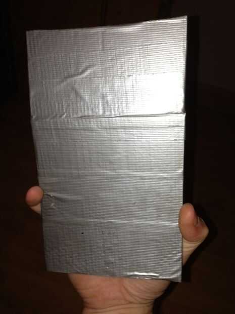 El primer paso es hacer una cartulina duplicados del ipad para usar durante el proceso de moldeo, como estoy seguro que nadie desea arruinar su Ipad. Primero corté un pedazo de cartón ligeramente más pequeño que el Ipad para que mi molde sostendría firmemente el ipad. Yo entonces lo cubrió en cinta aislante así el cartón sería mantener su forma mientras que en el alginato.