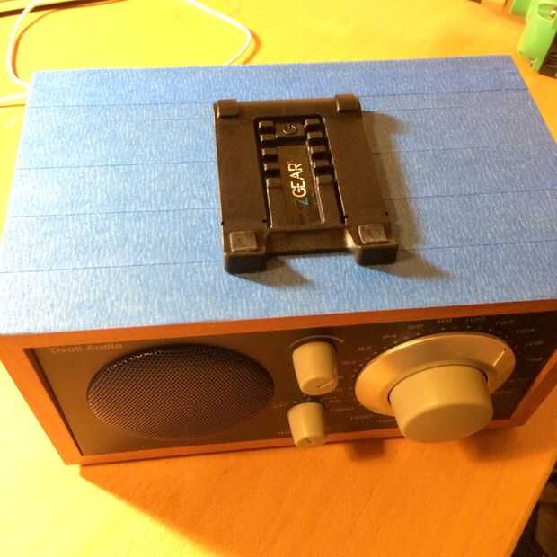 Cinta de la radio para proteger el acabado. Centro y trace el contorno de la base.