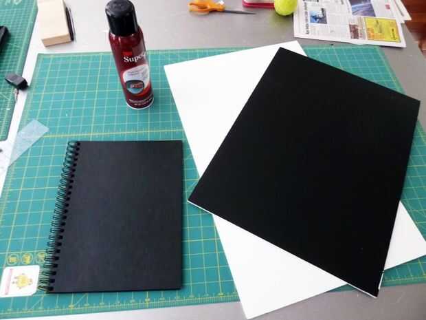 • Una o dos hojas de papel negro o tela delgada para cubrir el interior de la libreta