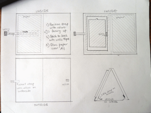 Finalmente, decidí pegar otra cinta en el exterior para mantener el portátil cerrado. Esta correa consigue pegada en la parte trasera, con otro trozo de velcro en él que se fijan a la pieza en la parte delantera. Es sólo unas pulgadas de largo, y su único propósito es mantener el libro cerrado.