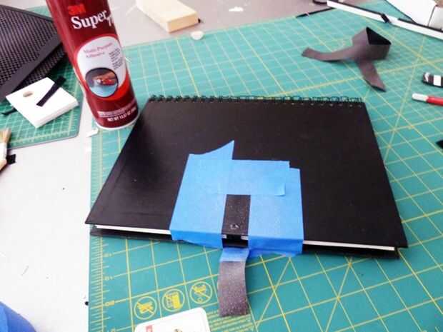 Una hoja de papel negro o tela va en el lado con la cinta de velcro del grosgrain en él para cubrir y reforzar ese pedacito.