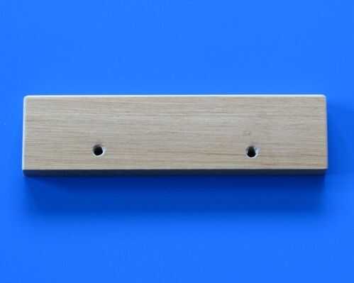 Cortado la pieza de madera a la medida. (El mío es de 11/2"x 6" x1/2"(40 mm x 150 mm x 13 mm)). Armar la canasta (cuadro 2) para marcar las posiciones de los orificios (Foto 3). Perforar y lijar la madera.