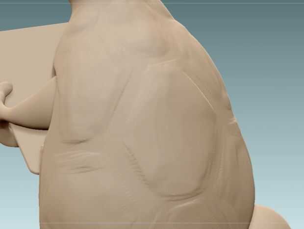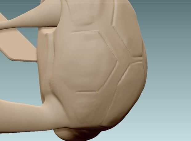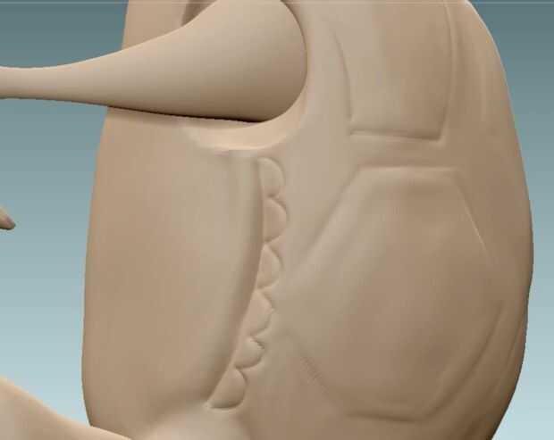 Ahora llegó el momento de comenzar a trabajar en la shell de la tortuga. Esbozar la forma con el cepillo de acumulación de arcilla y luego rellenarlo. Luego definir más las líneas estándar de presa. También puede Agregar algún detalle extra a los lados de la cáscara usando presa estándar y acumulación de arcilla.