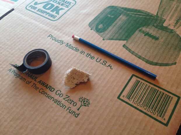 Para ello, necesita un trozo de una esponja, un lápiz y algunas cintas.