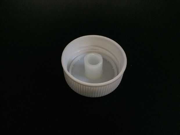 Usando la pistola encoladora caliente colocar la paja en el interior de la tapa de la botella. Trate de alinear en el centro.