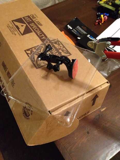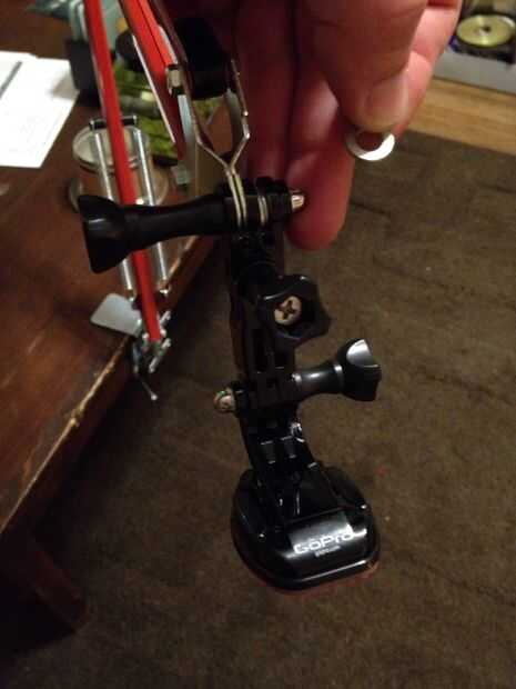 El go pro kit era perfecto para sujetar a la funda de iPad. Sólo tuve que hacer el agujero de acoplamiento un poco más grande en el brazo. Usé una dremel pero una broca más grande habría sido más rápida.