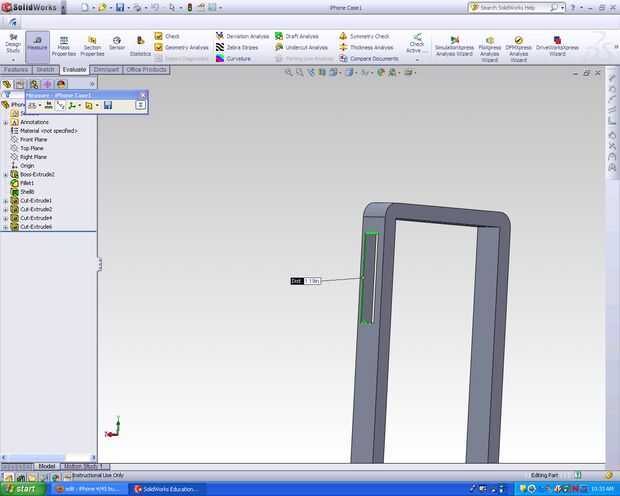 Este caso es realmente genial.Paso 1: Ultra impresionante iPhone 4/4S caso! (Los pasos 1-4) 1-tendrá que hacer un rectángulo en SolidWorks en aproximadamente unos 2,36. de altura y 2,5. de ancho2 - hacer una extrusión a 0,453-no un corte saca a una p