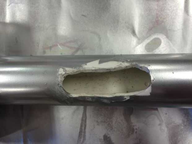 Utilice un pincel y pintura para cubrir todos los puntos que no consigue rociados después de retirar la cinta.
