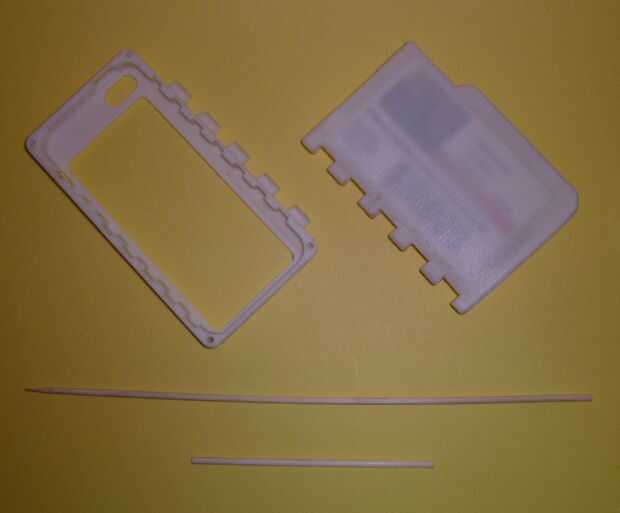 solía un pincho de bambú Ensamble las mitades de la espalda.  Cualquier barra con un diámetro de 2.9-3 mm debe trabajar para mantener Unidas las dos piezas.  Eres básicamente después algo con un apretado deslizable por lo dependiendo de la precisión de la impresora que va a potencial tiene que tener una barra más pequeña o más grande.