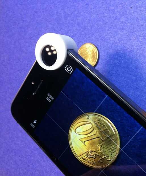 El objetivo cae en un hueco en el soporte y es sostenido en lugar por un poquito de pegamento o similar. Si tiene pegamento en la lente, se puede limpiar con quitaesmalte o acetona. El lente que usé es plano-convexo (un lado es plano). Cuando se insertan en el soporte, el lado plano de la lente enfrenta al teléfono.