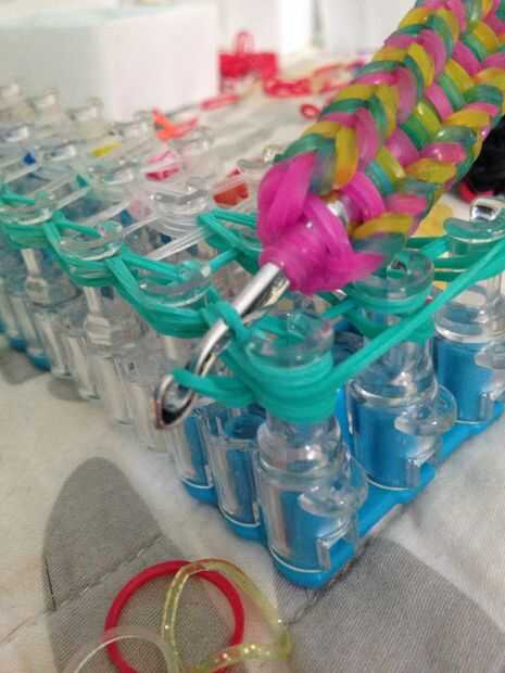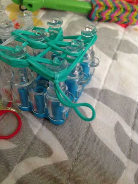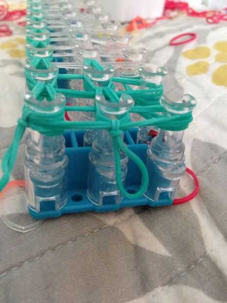 esto es un braclet muy fácil y divertido para hacer. Esperamos que disfrutes!Paso 1: materiales Se necesita: un telar, gancho, elásticos y un clip de C.Paso 2: Colocar los elásticos Primero escoger tres colores y a la clavija central. Sacó su color e