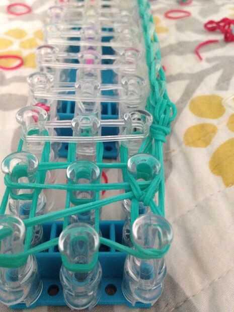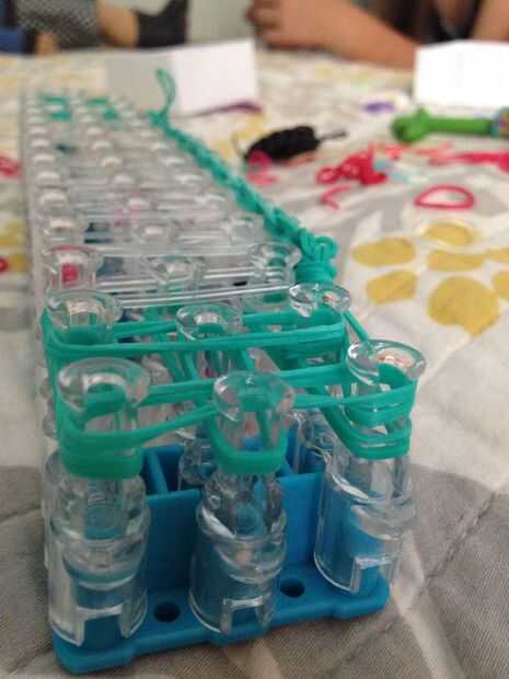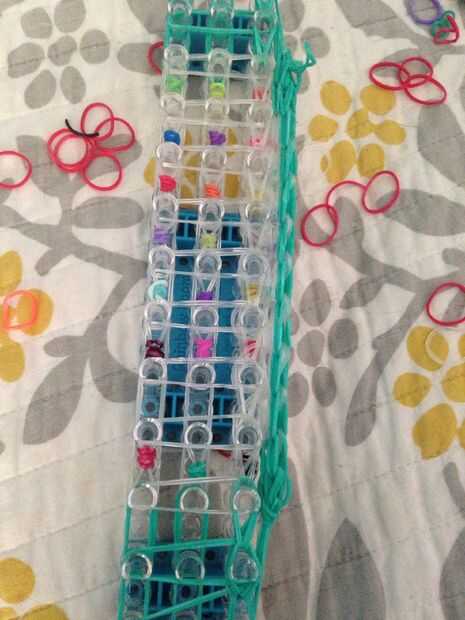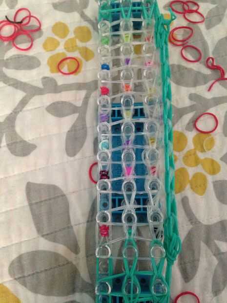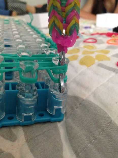 esto es un braclet muy fácil y divertido para hacer. Esperamos que disfrutes!Paso 1: materiales Se necesita: un telar, gancho, elásticos y un clip de C.Paso 2: Colocar los elásticos Primero escoger tres colores y a la clavija central. Sacó su color e