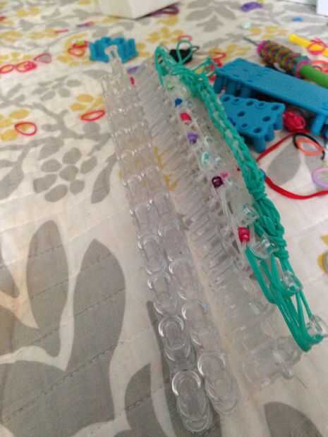 esto es un braclet muy fácil y divertido para hacer. Esperamos que disfrutes!Paso 1: materiales Se necesita: un telar, gancho, elásticos y un clip de C.Paso 2: Colocar los elásticos Primero escoger tres colores y a la clavija central. Sacó su color e