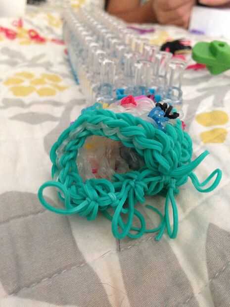 esto es un braclet muy fácil y divertido para hacer. Esperamos que disfrutes!Paso 1: materiales Se necesita: un telar, gancho, elásticos y un clip de C.Paso 2: Colocar los elásticos Primero escoger tres colores y a la clavija central. Sacó su color e
