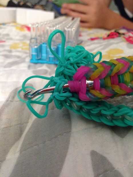 esto es un braclet muy fácil y divertido para hacer. Esperamos que disfrutes!Paso 1: materiales Se necesita: un telar, gancho, elásticos y un clip de C.Paso 2: Colocar los elásticos Primero escoger tres colores y a la clavija central. Sacó su color e