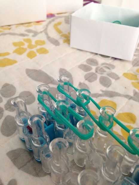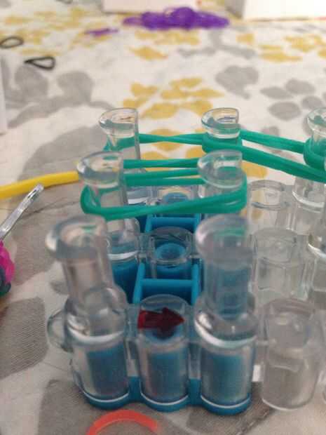 esto es un braclet muy fácil y divertido para hacer. Esperamos que disfrutes!Paso 1: materiales Se necesita: un telar, gancho, elásticos y un clip de C.Paso 2: Colocar los elásticos Primero escoger tres colores y a la clavija central. Sacó su color e