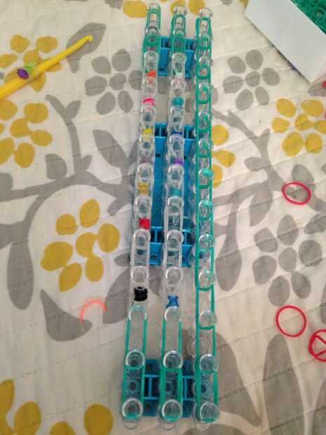 esto es un braclet muy fácil y divertido para hacer. Esperamos que disfrutes!Paso 1: materiales Se necesita: un telar, gancho, elásticos y un clip de C.Paso 2: Colocar los elásticos Primero escoger tres colores y a la clavija central. Sacó su color e