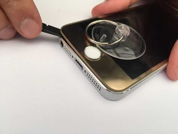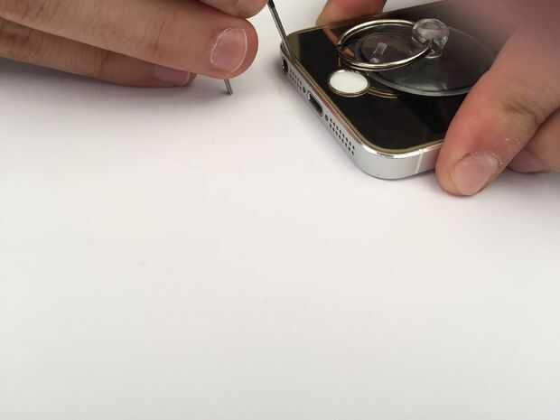 Tratar con cuidado jale el frente hacia arriba con una copa de succión hasta que haya un diminuto agujero. Si la Asamblea delantera no soltarse, intente pegar las pinzas entre el montaje posterior del metal y el marco plástico de la Asamblea anterior. Esto ayudará a aflojar la parte delantera. Una vez que usted tiene una pequeña abertura, pegan el spudger o una herramienta de plástico allí.