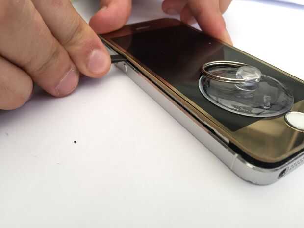 Una vez que se ha creado una pequeña brecha y han encajado en una herramienta de plástico, mueva la herramienta de plástico a lo largo de los lados del teléfono para separar completamente el frente de la parte posterior. El frente es sostenido en lugar por compuertas a ambos lados y puede que tenga que mover la herramienta para separar completamente la parte delantera. ¡Ten cuidado! No levante el frente más de una pulgada (2 cm). El botón home en el conjunto del frontal está conectado a la placa lógica en la parte inferior del teléfono. Este conector debe estar desconectado antes de la parte delantera se puede levantar totalmente.
