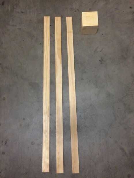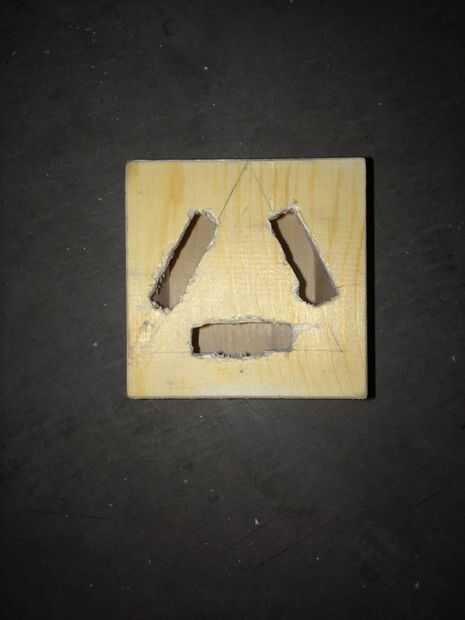 -Tome el cubo de madera, cortar tres orificios que son la general forma y tamaño de las tres tablas de madera.