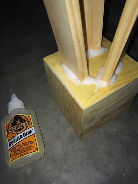 -Usando la bola para mantener las tablas en ángulo, utilice tablas de pegamento a pegamento industriales para cubo.